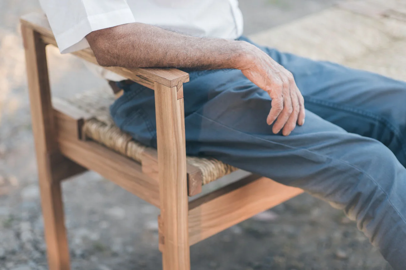 This bench includes three detachable frames for the seats, fabricated with joinery systems that allows more fibers to remain shown around the frame, rather than hidden.